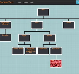 Oraganisation Chart 썸네일형 리스트형 [jQuery플러그인 ] Org Chart - 트리구조 시각화 플러그인 (조직도편하게 작성) jQuery Org Char Github https://github.com/wesnolte/jOrgChart jQuery Org Chart는 jQuery를 이용해 조직도와같은 트리형태의 데이터구조를 쉽게 표현할 수 있는 플러그인입니다. Org Chart는 아래와 같은 특징을 가지고 있습니다. 1. 조직도와 같은 트리형태의 데이터구조를 쉽게 표현할 수 있습니다. 2. 이미 작성된 목록을 Drag & Drop을 통해 재 배열 할 수 있습니다. 3. 각 노드의 보기와 숨기기를 클릭을 통해 할 수 있습니다. 4. 스타일(CSS)를 쉽게 변경할 수 있습니다. Org Chart 사용예 Food Beer Vegetables Click me Pumpkin .. 더보기 이전 1 다음